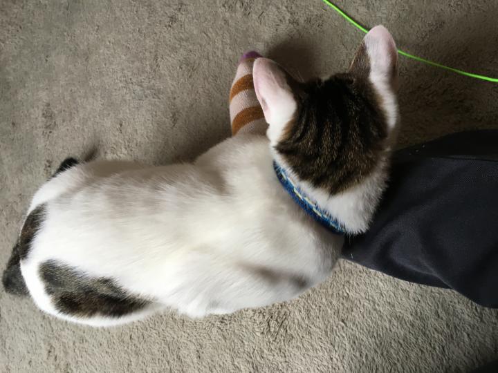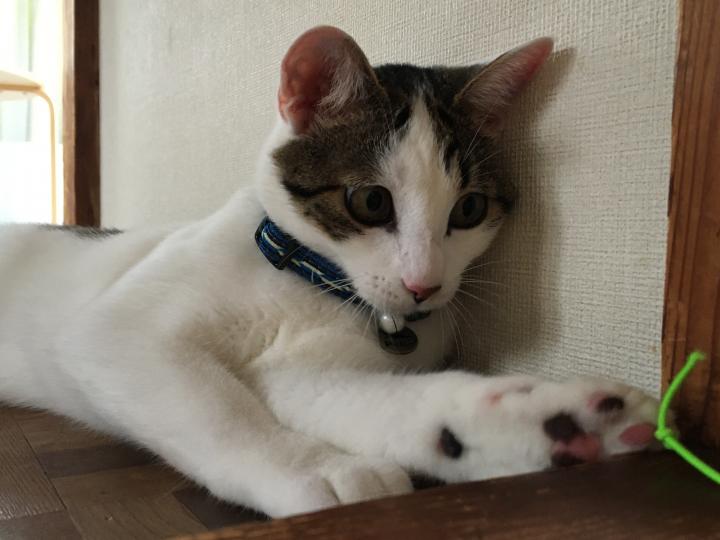 今日はちょっと悪戯してゲンが前に付けていた首輪をミルクに付けてみました笑