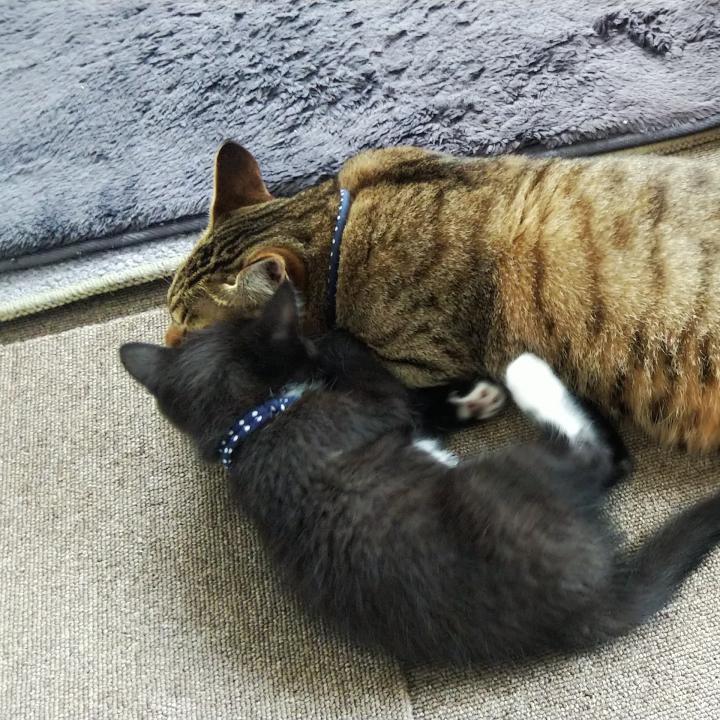 自営業でいつでも、相手をしてあげれます。 里親に迎えたねこちゃん。。 かわいくてかわいくて、家族で癒やされてます。 息子くんたちは、猫ちゃんにメロメロです