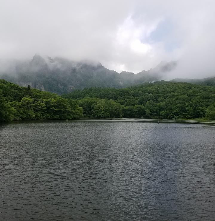 池の向こうの断崖が