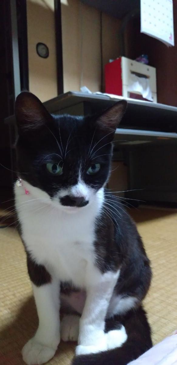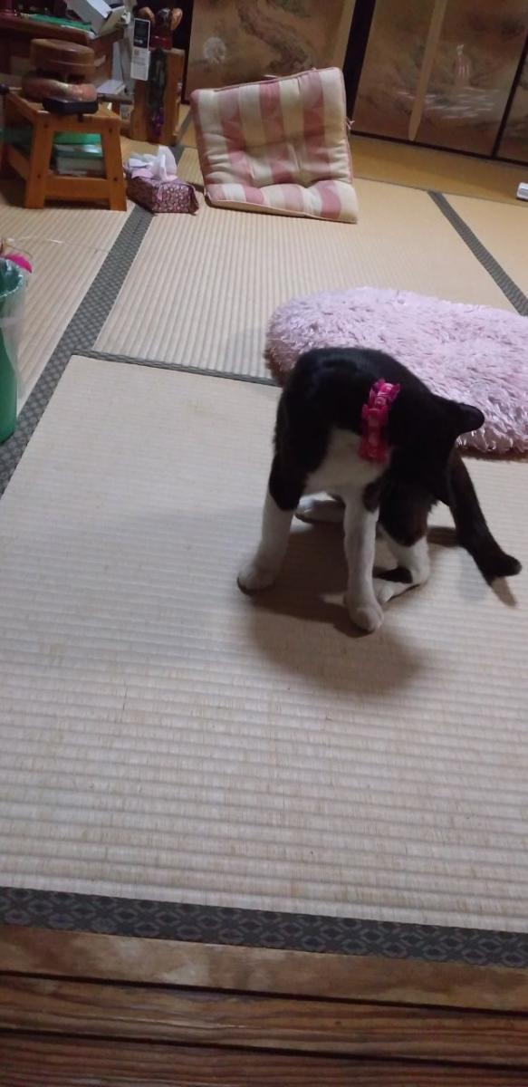 後ろのふすまがばっちぃのは、おはぎちゃんが家猫になる以前からですので(笑