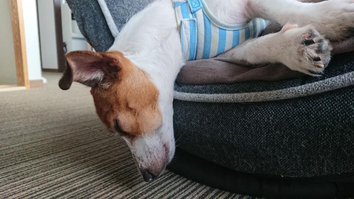 犬は3度目の散歩で家に帰りたがり帰宅後すぐにだら~んと爆睡してくれました。