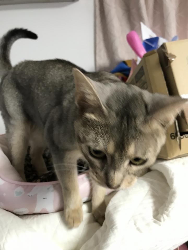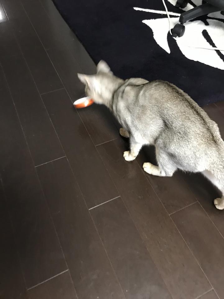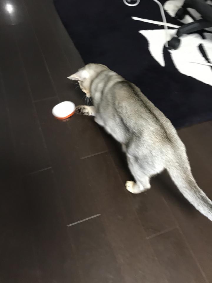 すぐに口と手でホッケーを始めるビビなのでした🐱