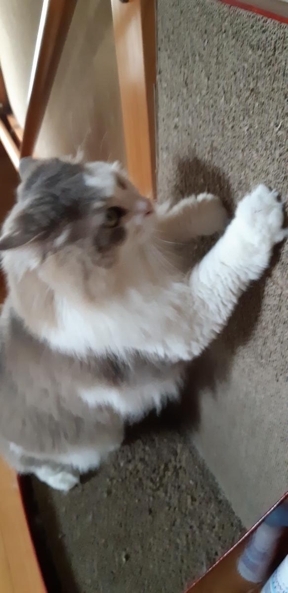あれれ、そこに登ったら毛玉が取れないんだけどな~。