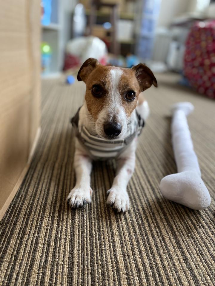 お昼寝はクレートに入れられて、おもちゃで遊ぶとモコが鳴いて集中できない。夜も気になって何度も起きちゃう。