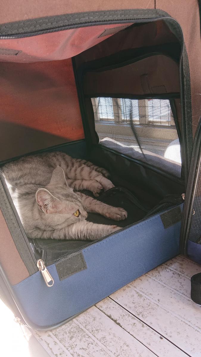 ↓ベランダでキャリーを天日干ししてたら中で寝ちゃったあんちゃん☆