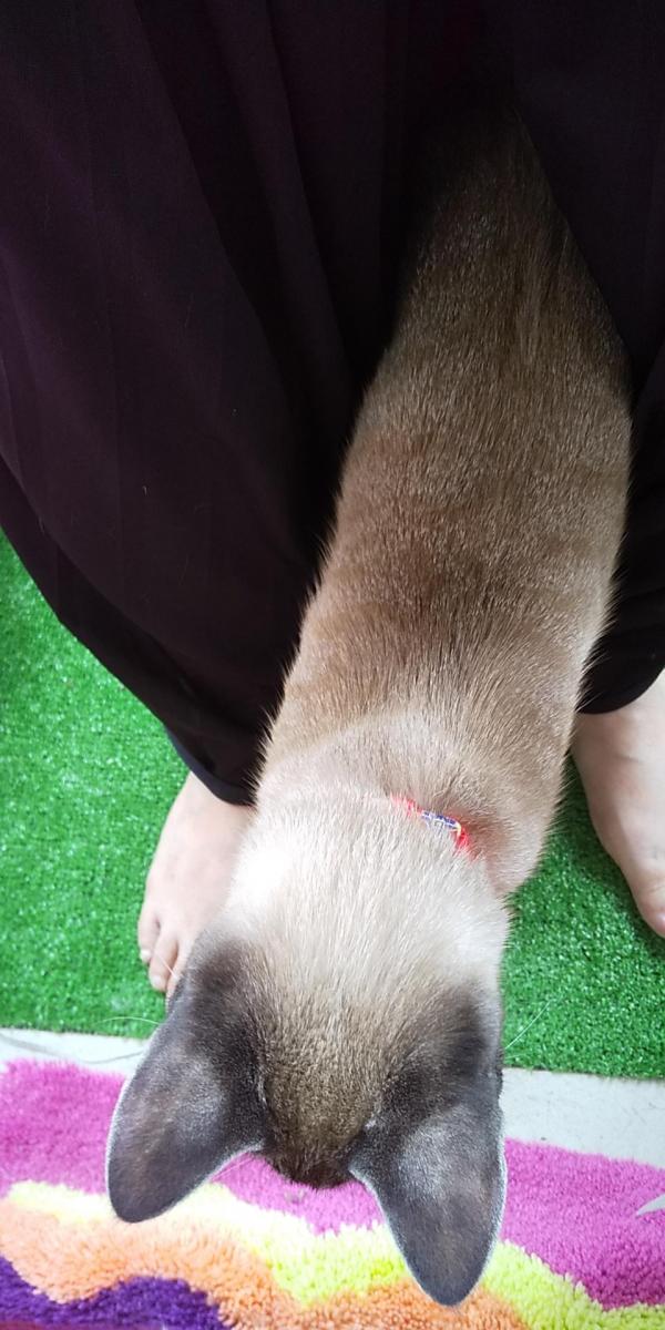 昨日は猫じゃらしでハッスルしすぎて、じゃらしがしっぽに引っかかって
