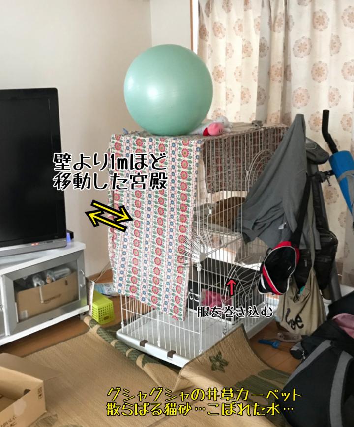 しかしここ数日、夜は宮殿内で暴れるように💧トイレの砂は飛び散り、水飲み皿は