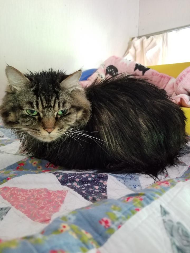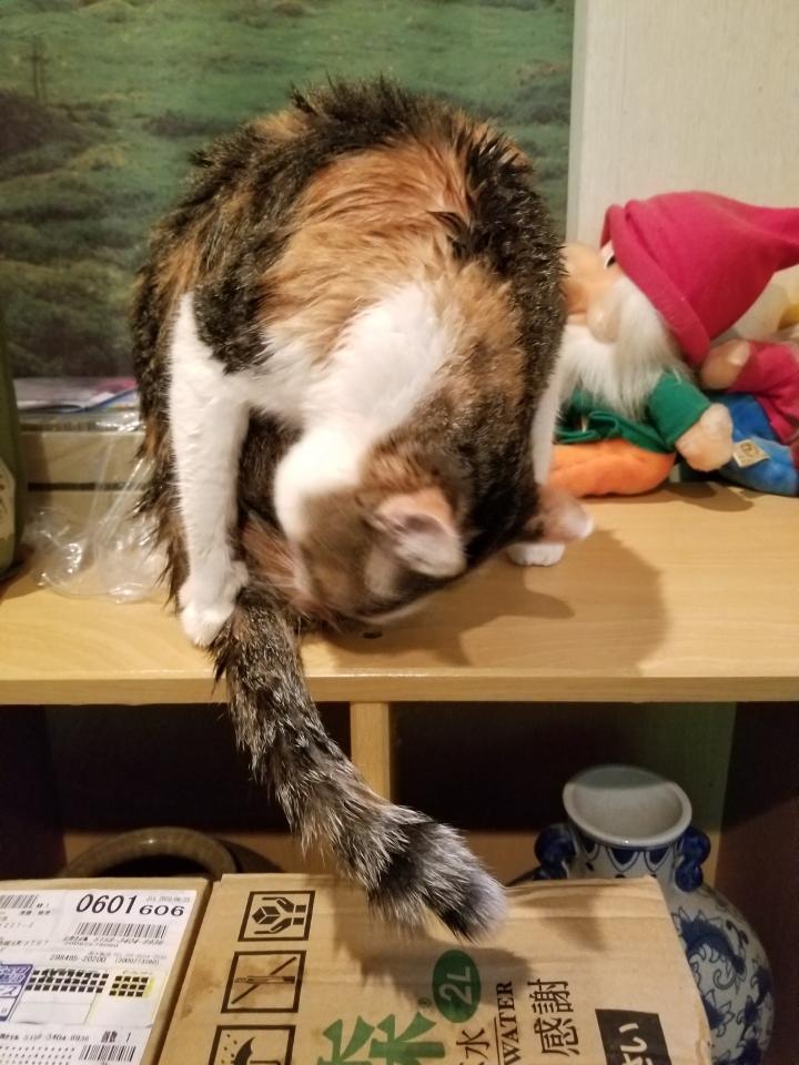 もふもふしてる猫あるあるですが、シャンプーしたらきなこが子猫かと思うくらい意外と細かった…