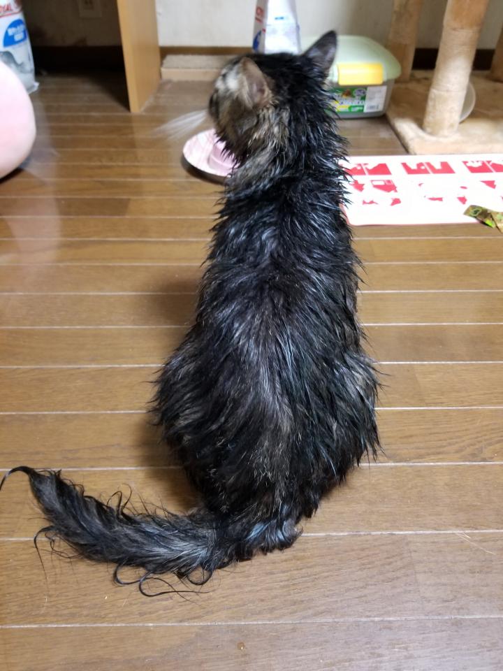 ゆず→クロ→きなこ→おはぎの順番でシャンプーしたけど、一番おとなしかったのがクロ🐱