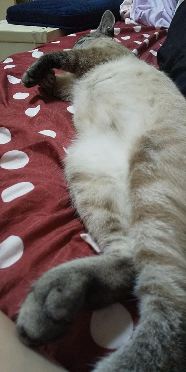 その後は自分で窓のキャットタワーで寝るにゃーと寝ていました。