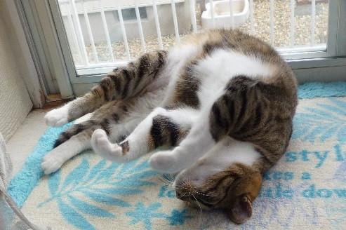その帰りに、猫砂に爪とぎなどを仕入れて帰宅すると、リクは拗ねてツチノコ状態。