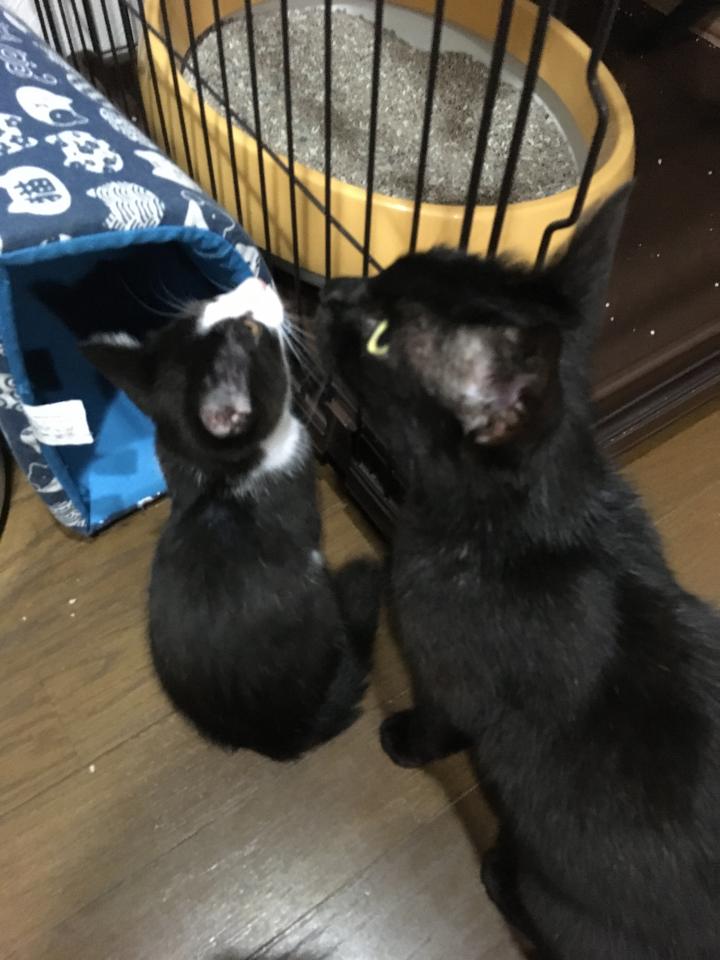 甘え声で鳴き、ご飯は相手のを欲しがり、トイレを共有したがり、姿が見えないと鳴き叫ぶ。