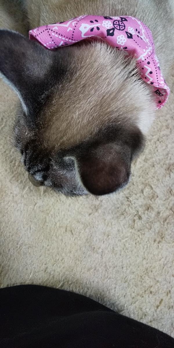 ちょっとバンダナがずれちゃうと耳が隠れてものすごい嫌がるので