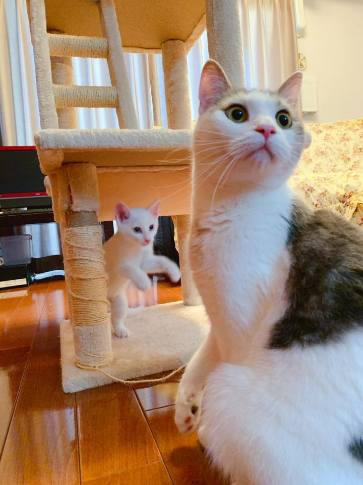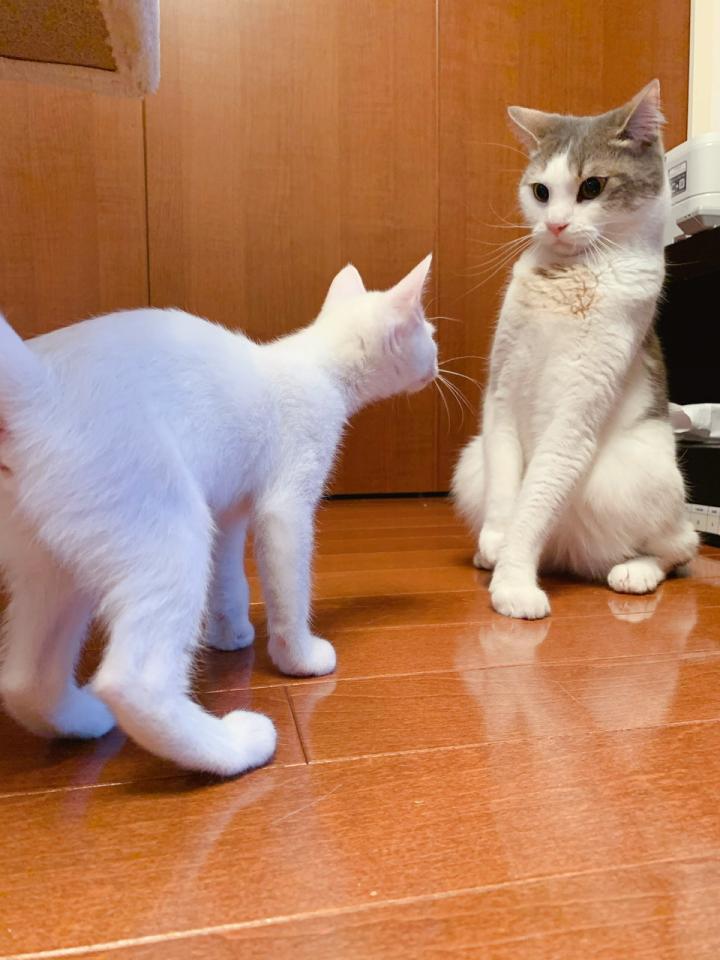 先住猫おっとりぼうや(2歳)との対面後、ふたりの関係から目が離せません😂