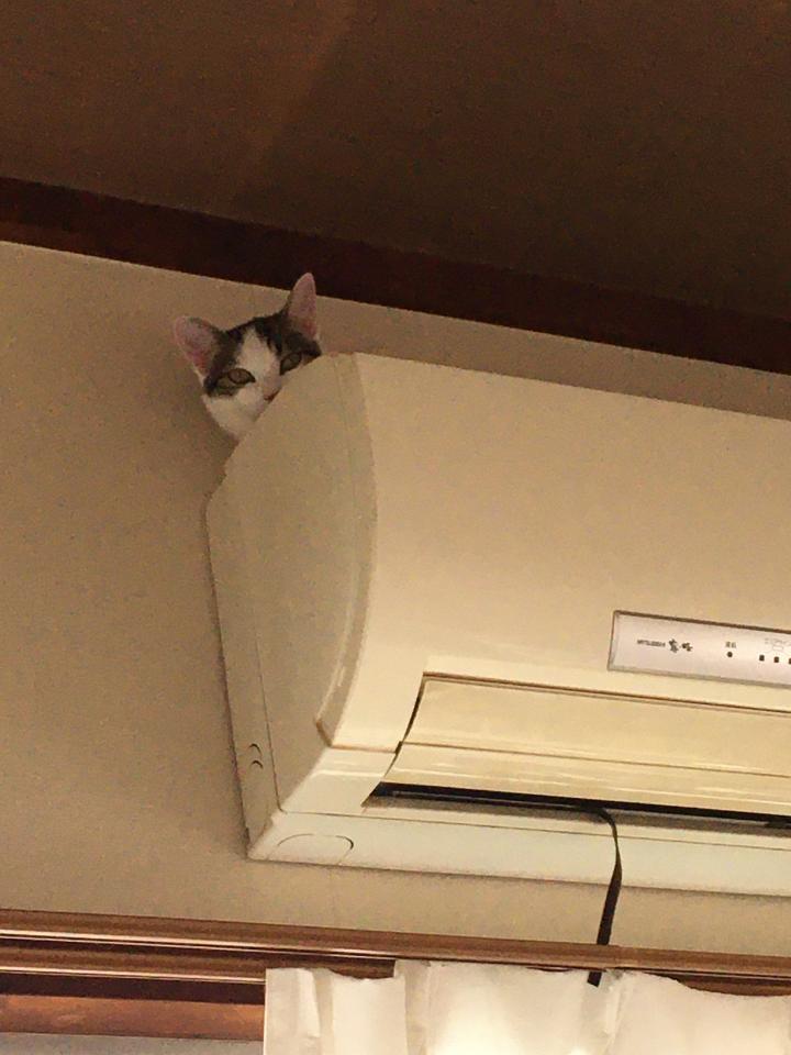 ってゆーか、何で最近エアコンの上お気に入り場所になってるのよ💧