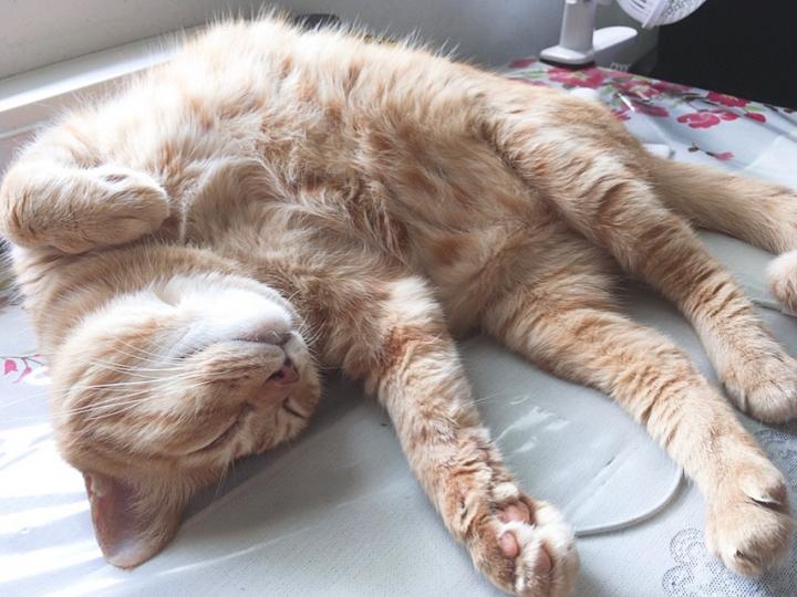 彼は暑くなるとこれ見よがしに、人の前のテーブルにデーンと寝ていました。