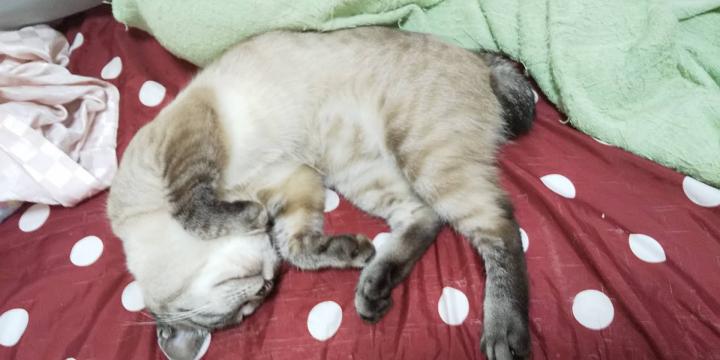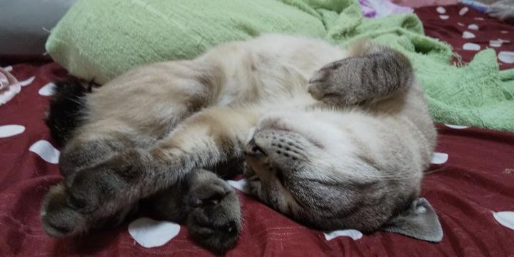 腕枕なくなったので、自分で腕をきゅっとしています🐱