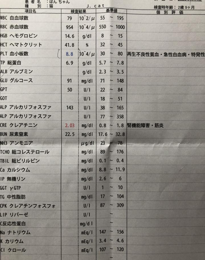 とりあえず、1ヶ月後に再検査をしてその結果次第ではSDMAの検査も考えよう