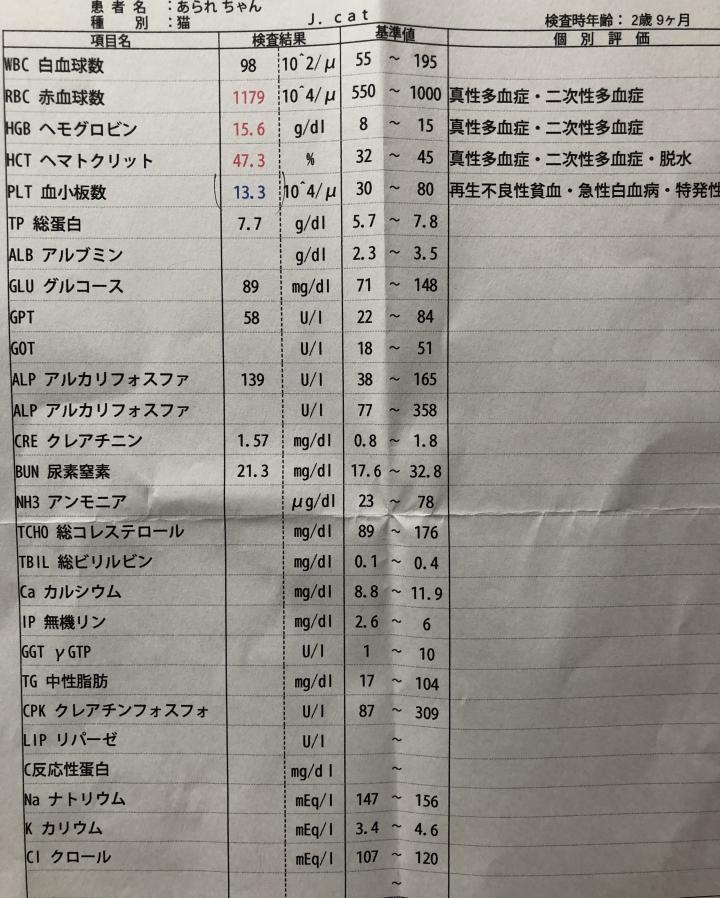 BUNの数値がオーバーしていたのはその時だけだったので私の中で