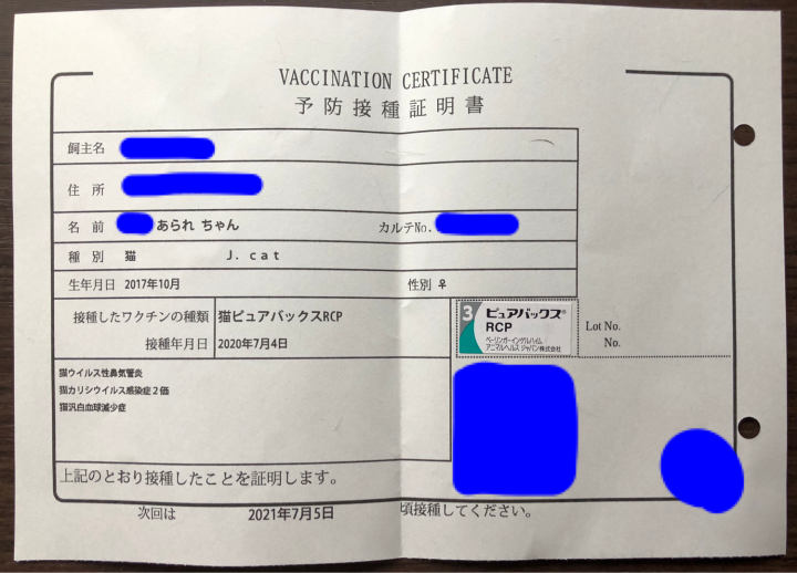 私、猫のワクチンを打つときに