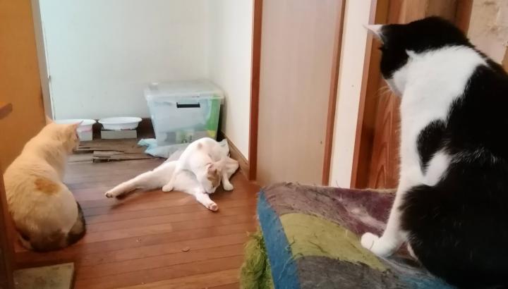 ストレスも溜まっているだろうし、あまり出来なかった毛繕いを開始。