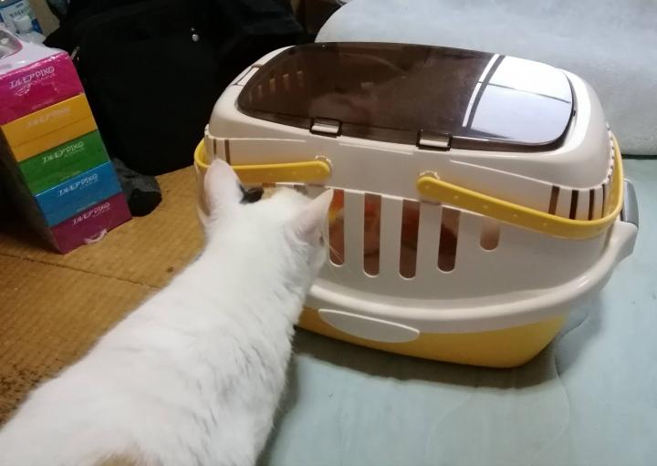 匂いが違っていそうなので、まずはキャリーごと…