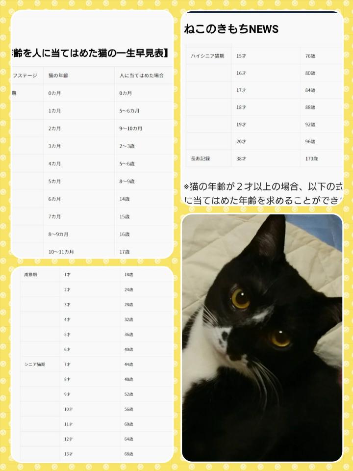 🐈ちゃんの年齢と人間の年齢比較が