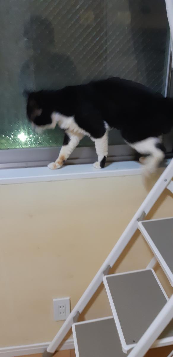 最初は全然登らなかったんですが、カリカリを段々に置いて食べさせたらその後も自分で登るようになりました!!