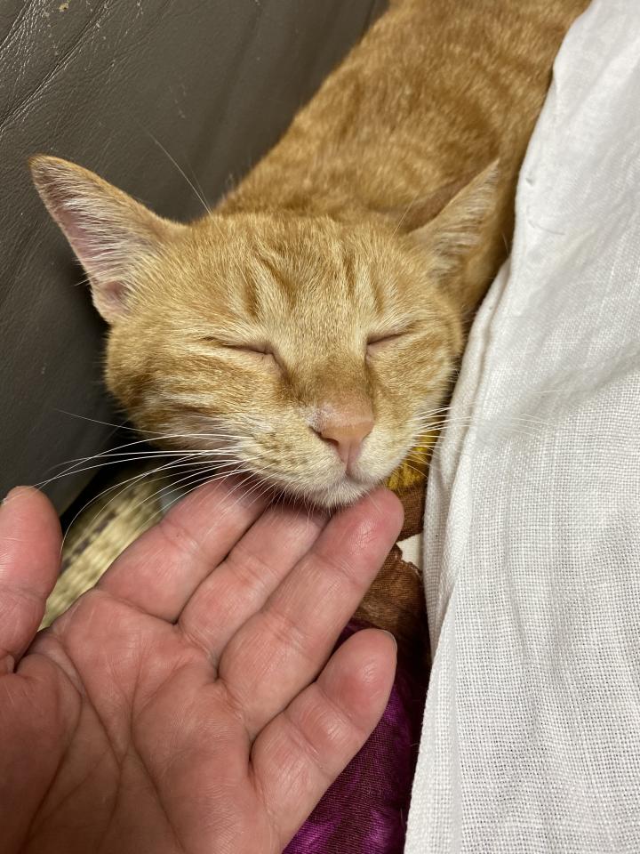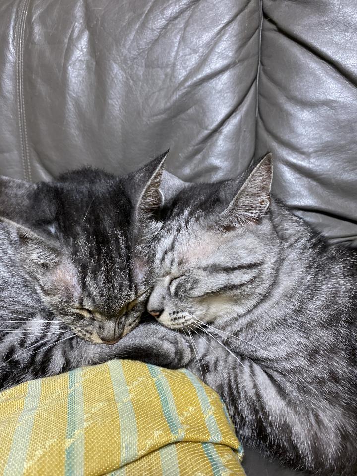 にゃんたろ-の隣に来てびたっ・・とくっついて寝転がるようになりました。