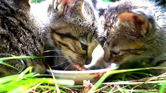 梅雨の土砂降りの雨の中、子猫たちにシーバ(Sheba)とカルカン(kalkan)を給餌したらすさまじい勢いで食べたの動画はこちら