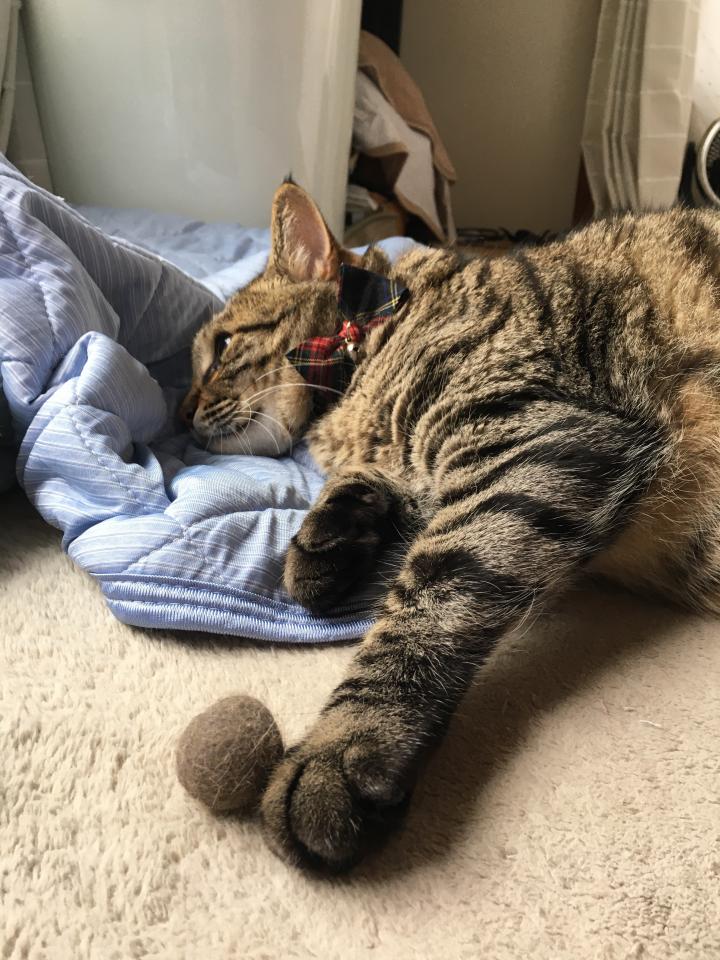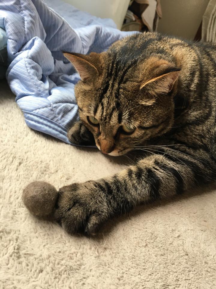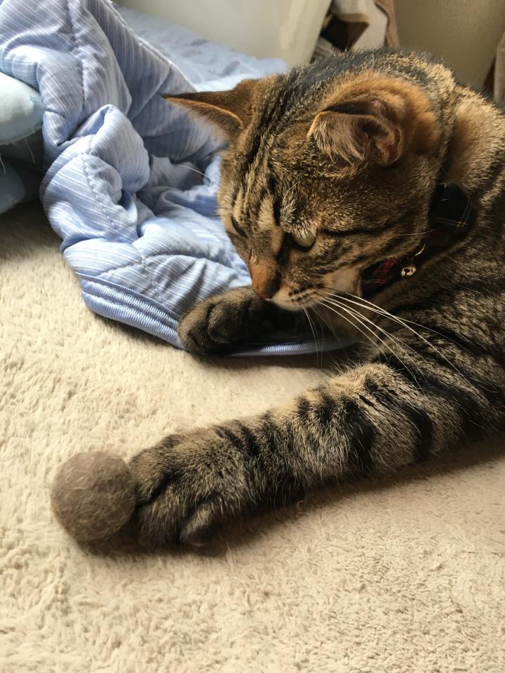 ミルクも何故かゲン毛ボールをナメナメしたりします😅