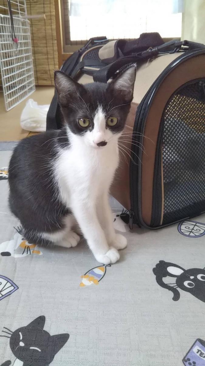 はっちゃんはさくらと同じハチワレの綺麗な女の子です。5兄妹居ましたが一番母親にくっついていた子だったので、母親のさくらと親子ペア(それもそっくりさんのハチワレペア)で里親募集していました。