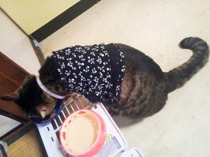 帰宅してご褒美のチュールにステロイドと今回貰った抗生物質を飲ませる。