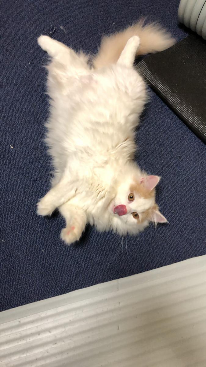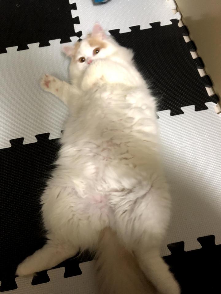 パパ(次男はスイのパパ)のおうちで いつもへそ天のスイだにゃ🐾