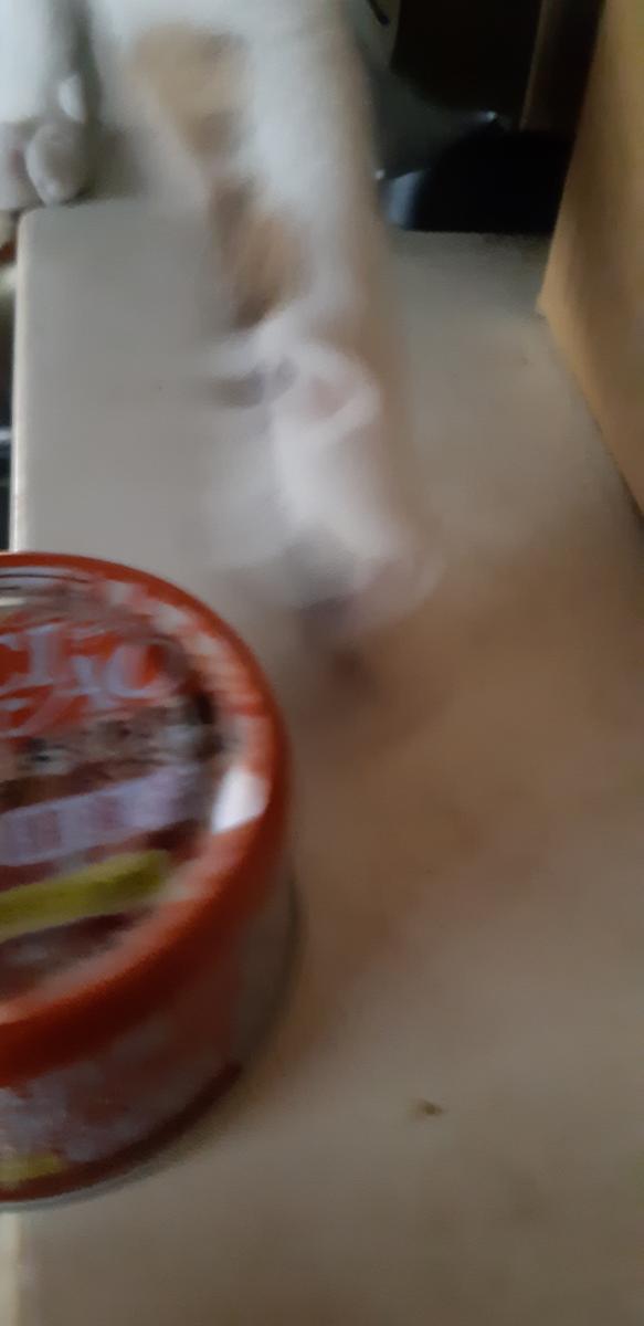 何事かと見に行ったら、ナヲちゃんが猫缶を開けようと奮闘していた。