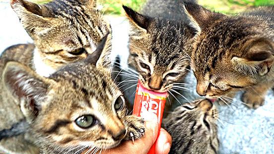 令和2年7月豪雨の晴れ間に子猫たちにちゅ~るをあげたらニャーニャーの大合唱ですさまじくとんでもないことにの動画はこちら