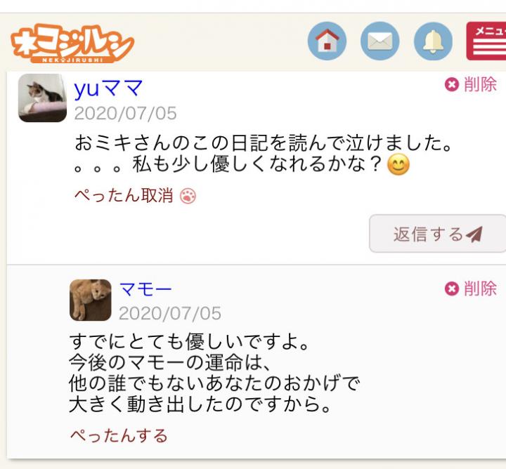 コメントやメッセージで
