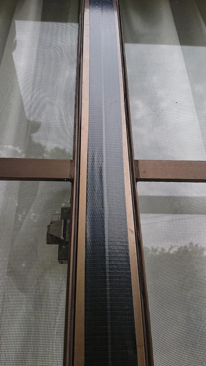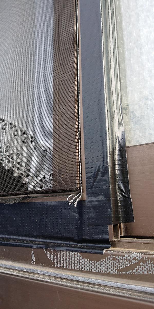 網戸を外から目貼りしています。