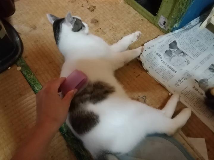 チャンス!とばかりにブラッシング開始。