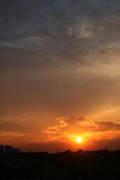 3日前の夕日 雲がなければ太陽の左側に富士山が見えます。