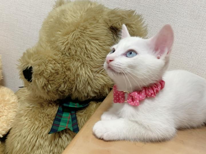 「シャム系の血が入っているブルーアイの子は先天性の眼振をもっている可能性がある。しかしモモの現状は眼振に値するレベルではない。