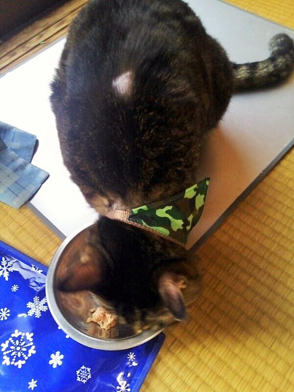 勿論、妹にも分けてあげる兄。沢山貰ったからもう半分こじゃなくていいんだよ。