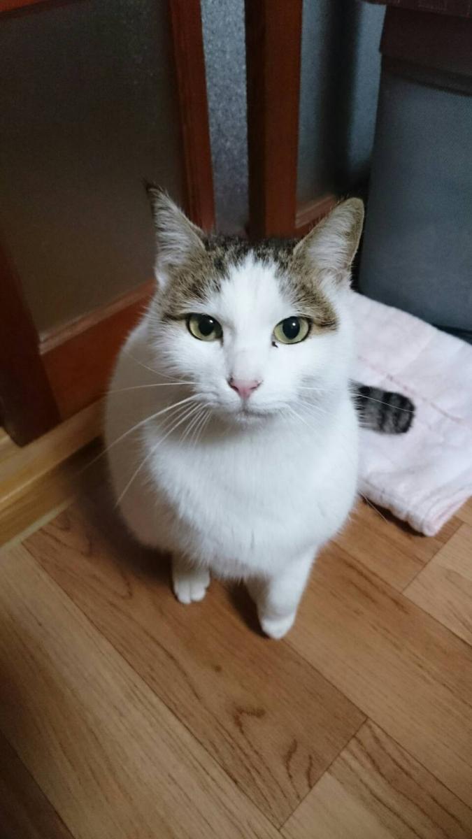 シロチャんは大雨でない限りパトロールに出て行った。これは、早朝パトロールから帰ったときのシロチャん。この後、牛乳とオジャコで一服して、デザートのちゅーるをおねだりして次のパトロールに備えていました。