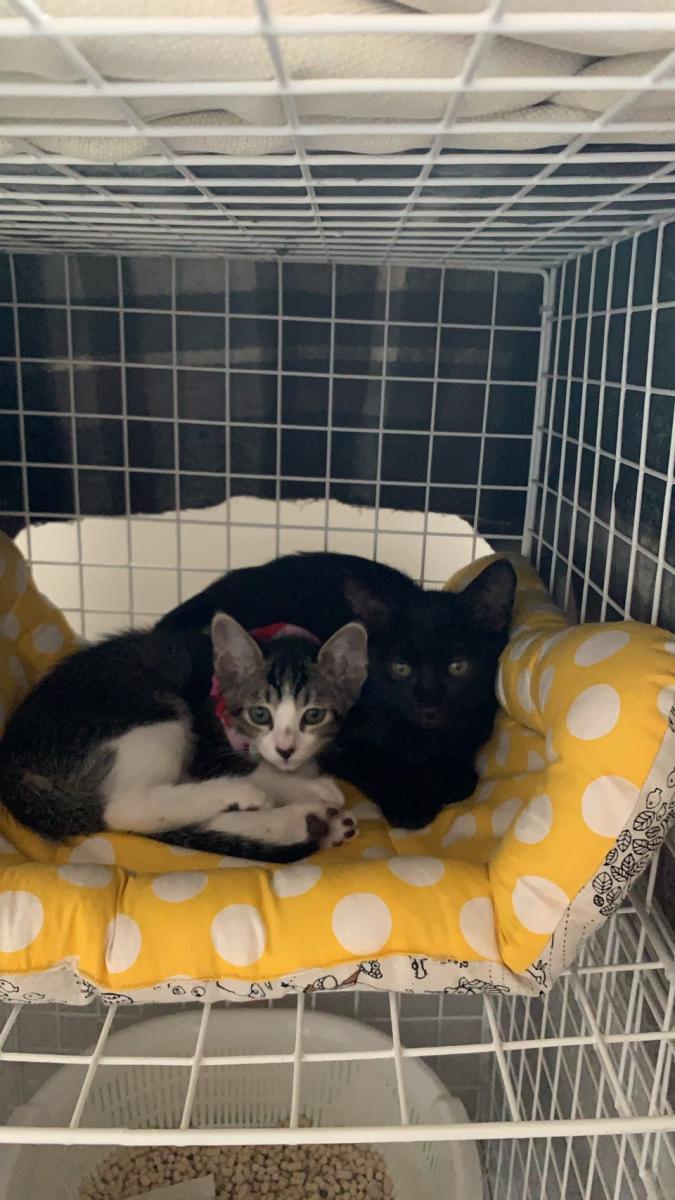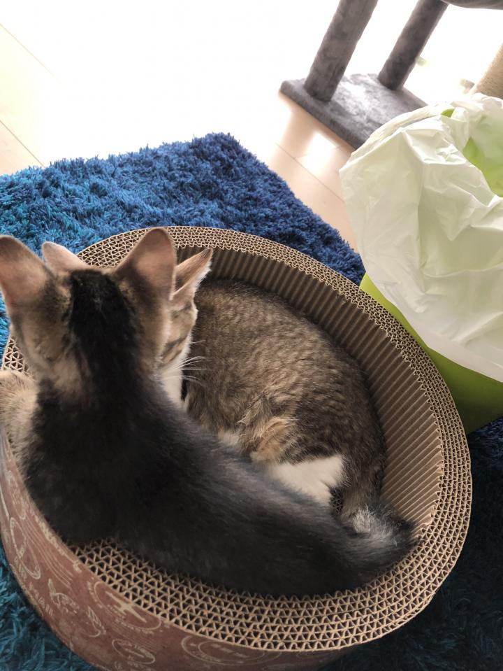 月(マメちび)とトラはすっかり飼い猫暮らしを謳歌しています☆