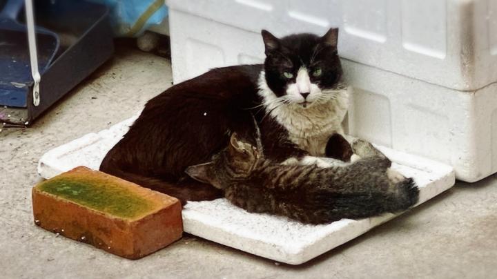ついさっきまでママ猫のオッパイを吸っていたと思う(;_;)