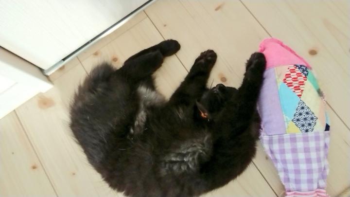 自由にゃん。我が家の子は猫捨てるなぁ。