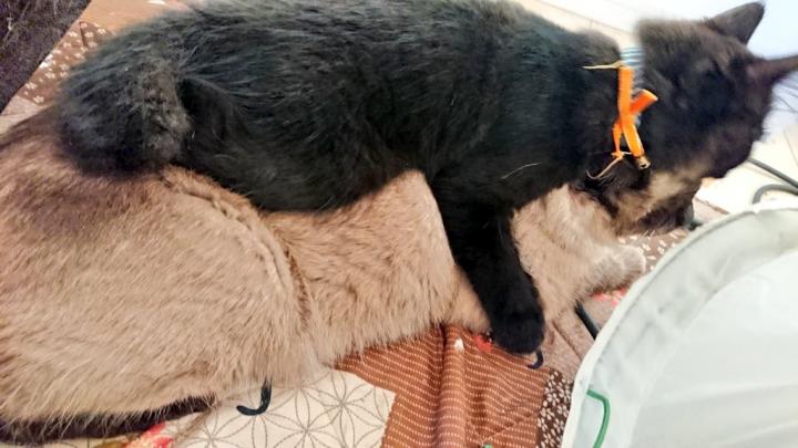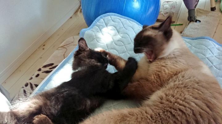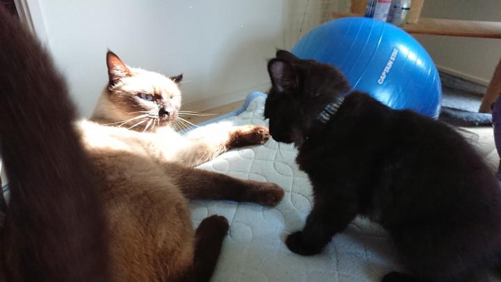今日は朝から高虎君は大福にちょっかいかけに行ってます。