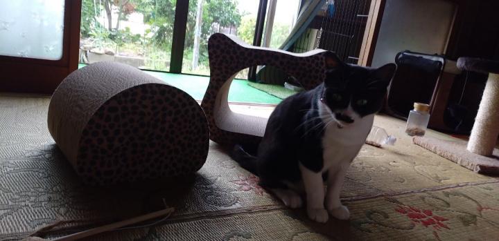 外側の猫型のは、猫ちゃん入って遊べます♪というもの。