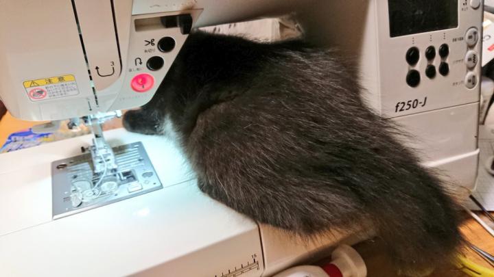 作業前の点検?ミシンの中はやめてよ。。さらに作業困難。