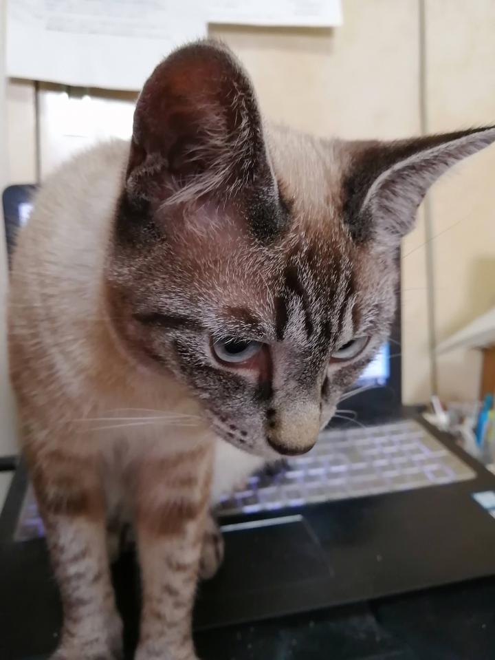 どうやらシャルルはお腹が空くとPCの上にアピールする感じのようです。